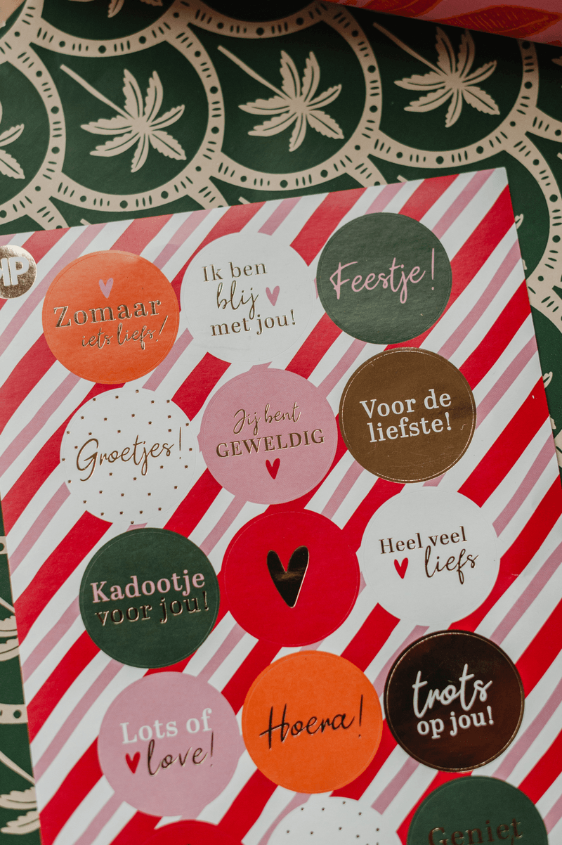 De vrolijke dessins van deze stickers zijn ook verkrijgbaar op rol, per 250 stuks. Perfect voor klanten die grotere aantallen willen of cadeaus regelmatig willen verpakken.