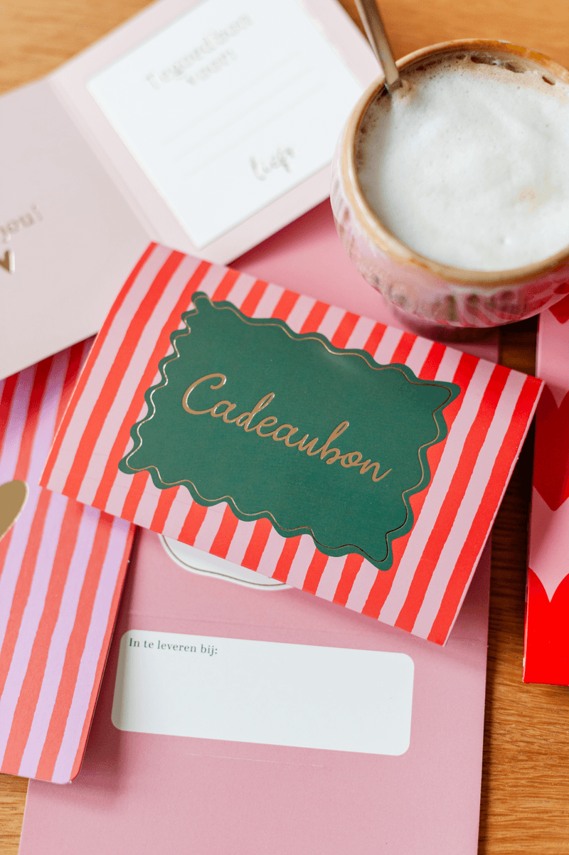 Binnenin kan eenvoudig de waarde, de datum en afleverlocatie worden ingevuld. Zo schrijf je de cadeaubon snel uit en geef je klanten maximale flexibiliteit. Er is bovendien ruimte voor een bedrijfsstempel, waardoor elke cadeaubon direct herkenbaar is als onderdeel van jouw winkel.