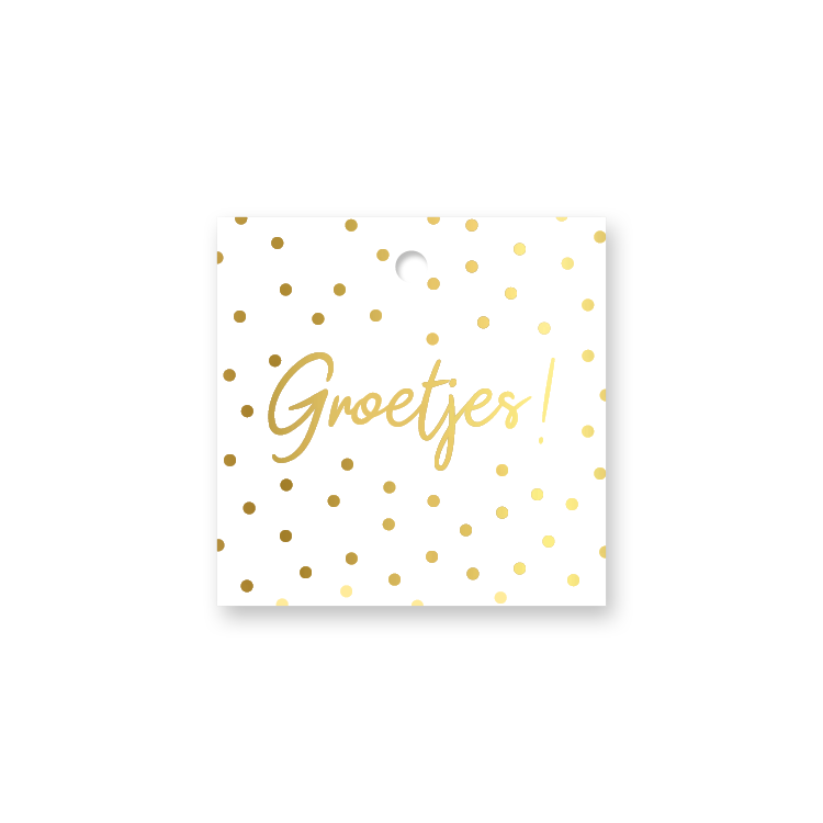 Breng een vrolijke en warme touch aan elk cadeau met dit vrolijke Groetjes-label. De goudfolie zorgt voor een luxe uitstraling.