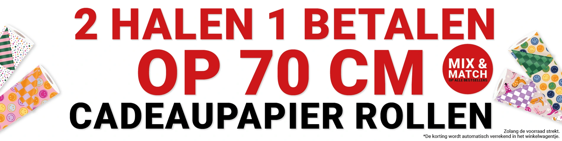 - Diverse formaten: Wij bieden rollen inpakpapier in verschillende breedtes, van 30 cm tot 70 cm. Populaire maten zoals 30 cm en 50 cm zijn altijd op voorraad. Heeft u specifieke wensen?