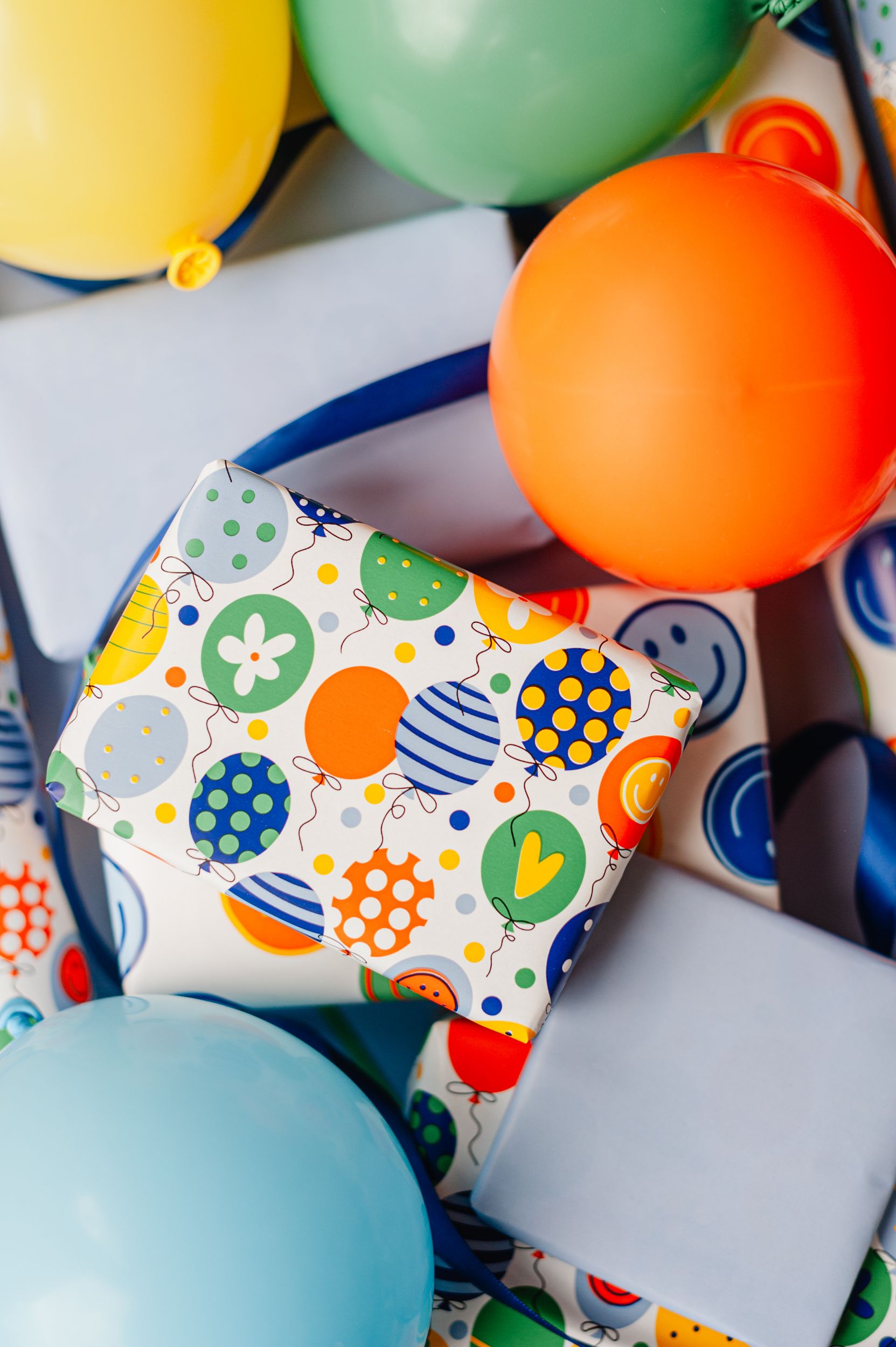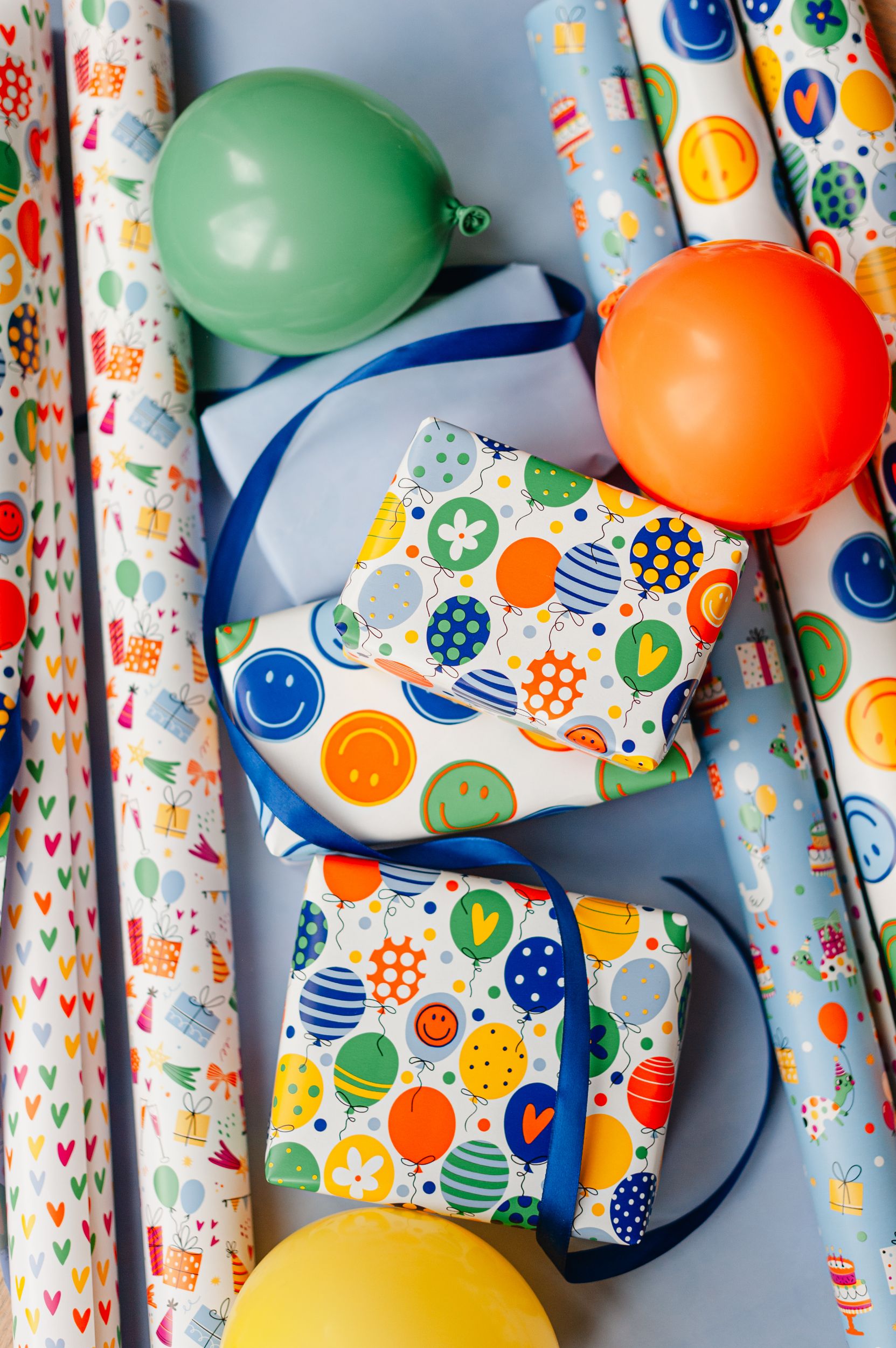 Coated cadeaupapier Birthday balloons 30cm 100 meter. Perfect te gebruiken voor het inpakken van uw cadeautjes of geschenk.