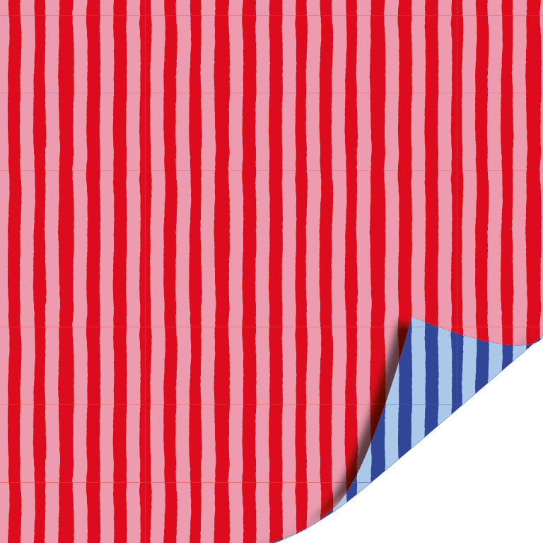 Coated cadeaupapier Soft Stripe (blue/red) op rol van 30cm x 100 meter met een stijlvol en eigentijds dessin. Perfect te gebruiken voor het inpakken van je cadeautjes of geschenk.