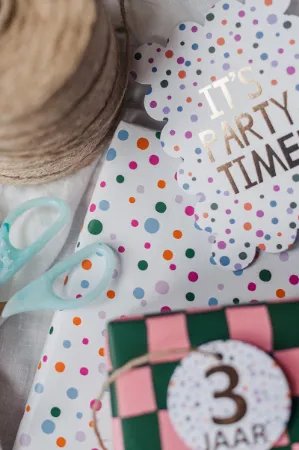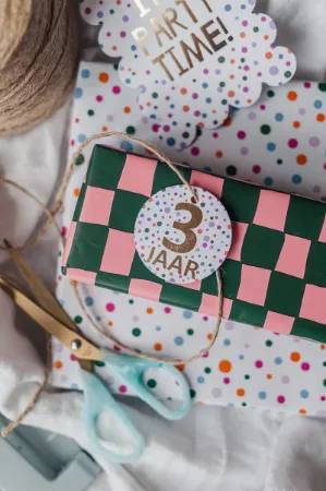 Profiteer nu van extra korting op deze kleurrijke set inpakpapier. De combinatie van speelse stippen en trendy blokpatroon zorgt voor een frisse en moderne uitstraling. Dankzij de dubbelzijdige bedrukking met contrasterende achterzijden kun je eindeloos mixen en matchen. Deze set is ideaal voor verjaardagen, kinderfeestjes of om elk cadeau een vrolijke twist te geven! Beide rollen zijn dubbelzijdig bedrukt, waardoor ze goed te combineren zijn met diverse cadeaulinten, cadeaukaartjes of wensetiketten.