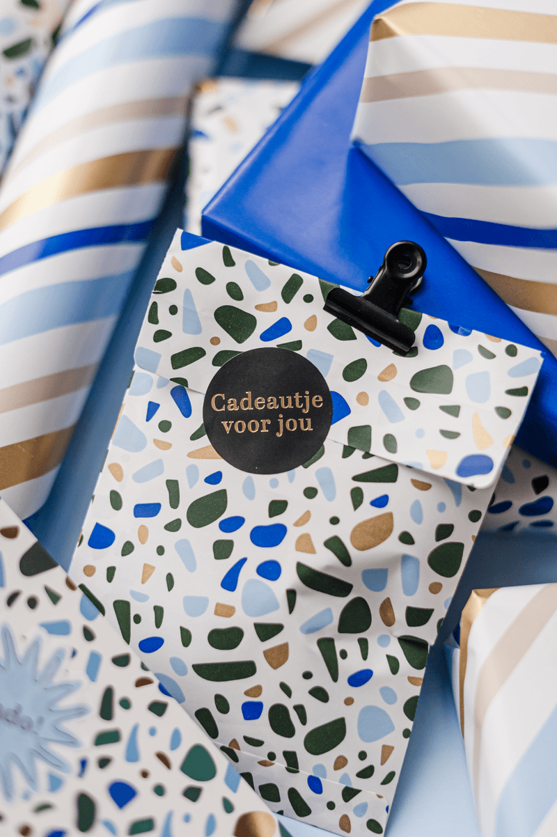 Terrazzo cadeauzakjes in blauw geven je cadeaus direct een speelse en feestelijke uitstraling. Binnen een handomdraai is je geschenk mooi en met een vrolijk accent verpakt. Voeg een wensetiket en lint toe en maak het cadeau helemaal af!