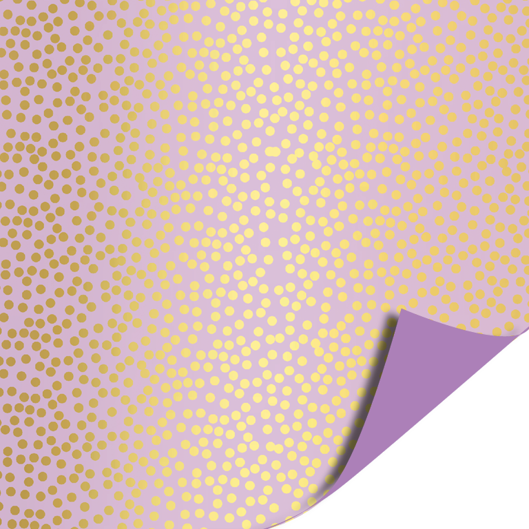 Coated cadeaupapier Minidots purple/gold AZ purple. 30 cm x 100 meter. Perfect te gebruiken voor het inpakken van uw cadeautjes of geschenk.