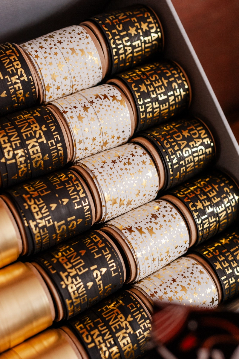 Vier de feestdagen stijlvol met de KP® Displaybox Krullint – Feestdagen. 60 rollen van 10 meter in luxe dessins: goud, zilver, glitter en mooie bedrukte cadeaulinten. De stevige box houdt alles overzichtelijk en het soepel krullende lint geeft cadeaus direct een luxe, feestelijke uitstraling. Ideaal voor kerstpakketten, geschenken of creatieve decoraties. Ideaal om een cadeaulabel aan te bevestigen voor een persoonlijke afwerking.