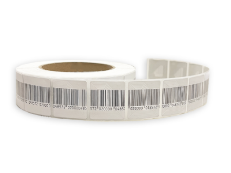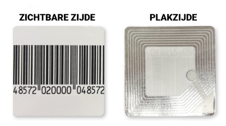 EAS RF label High Q wit met dummy barcode is geschikt voor alle gangbare RF alarmsystemen en alarmpoortjes