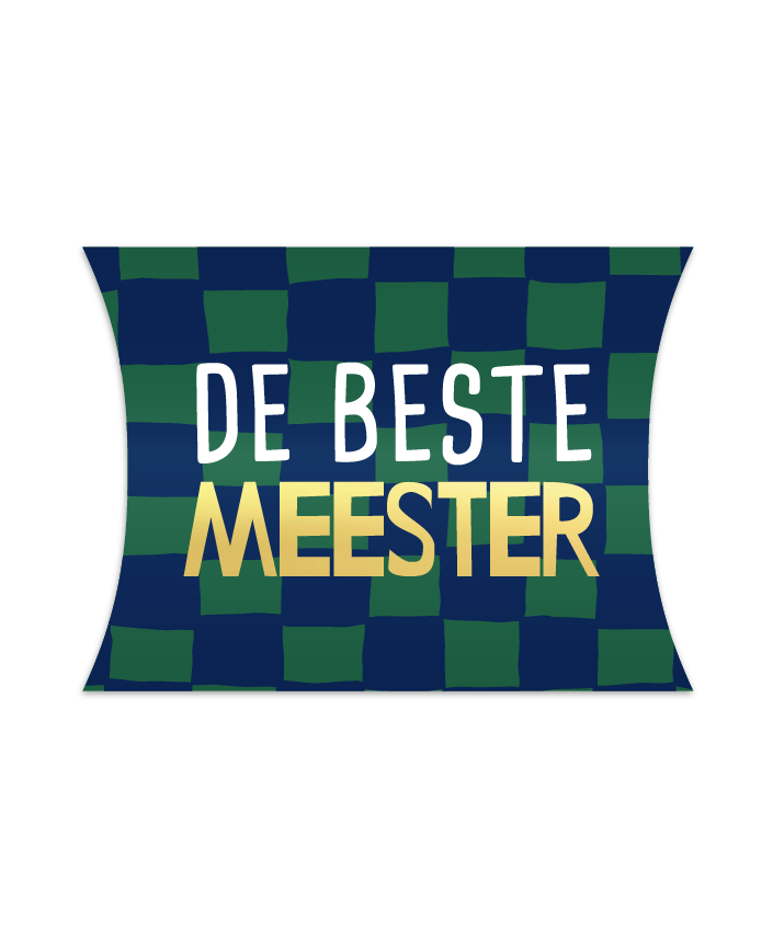 Het gondeldoosje "De Beste Meester" met een handgetekend groen/blauw grid is een stijlvolle manier om uw meester te bedanken. Dit unieke doosje is perfect voor het inpakken van een cadeau of een persoonlijke boodschap, en laat zien hoeveel je zijn inzet waardeert!