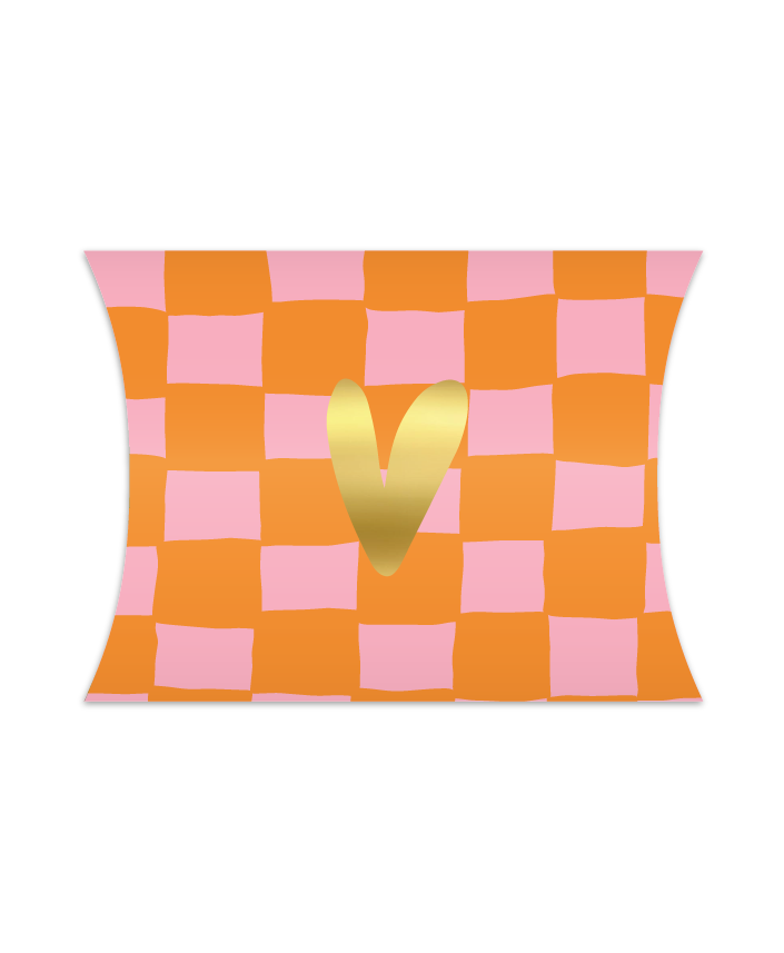 Het gondeldoosje "Gouden hart + Handdrawn Grid" in Oranje en Roze is een vrolijke en unieke verpakking voor je cadeautjes. Met een speels rasterontwerp en een hartje als detail is dit doosje perfect om kleine geschenken op een originele manier te presenteren.