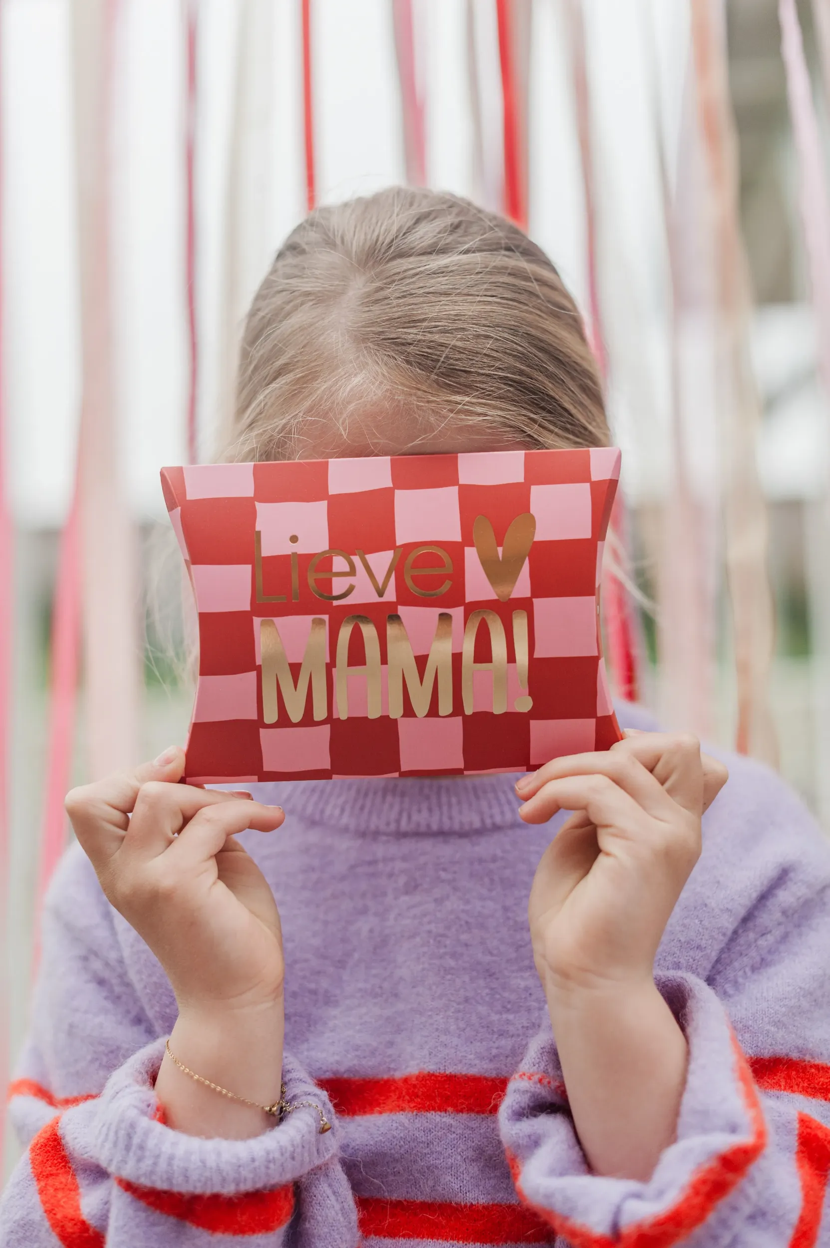 Het gondeldoosje "Lieve Mama" in handgetekend grid met roze en rode accenten is een liefdevolle manier om uw moeder te verrassen. Dit stijlvolle doosje is perfect voor het inpakken van een persoonlijk cadeau of een bedankje, en laat zien hoeveel u om haar geeft