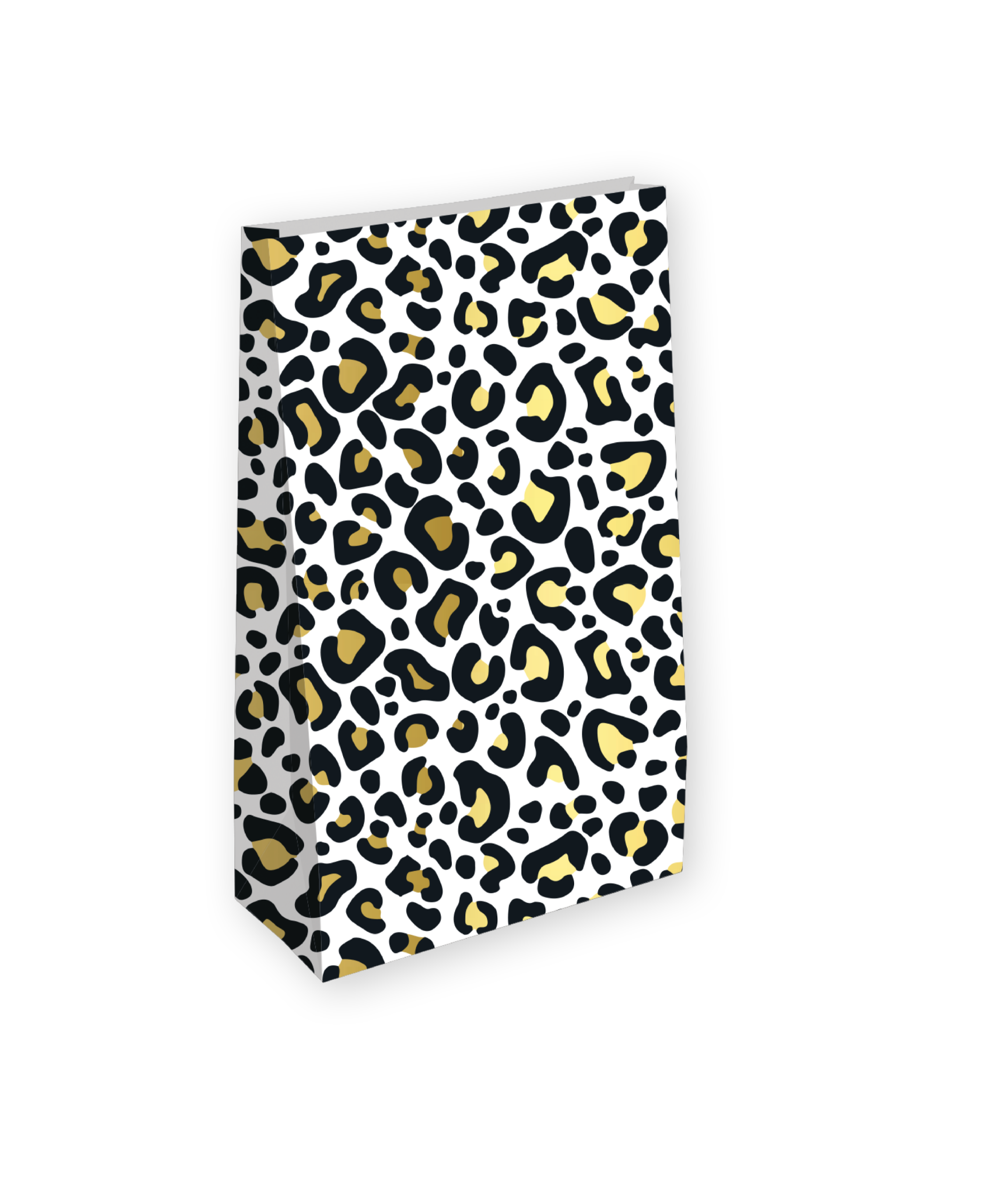 Leuke papieren zakjes van stevig kraftpapier in het design Leopard white/gold. Ideaal voor het maken van traktaties, bedankjes of kleine cadeautjes.