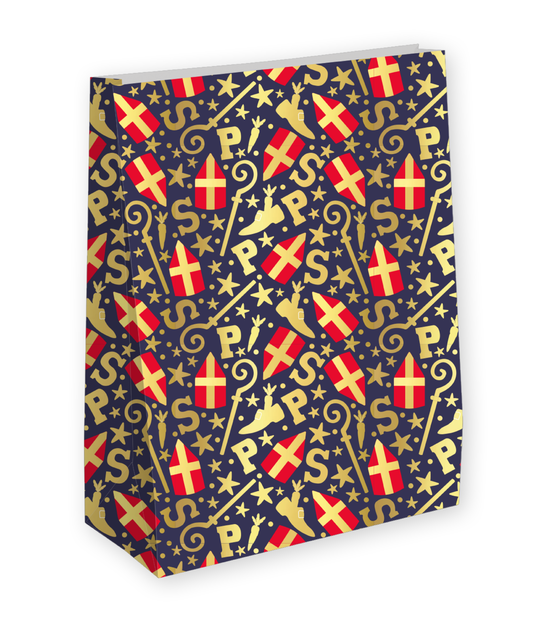KP® Kraft papieren zakken - Mijter feest blauw 27+15x36cm, 25t