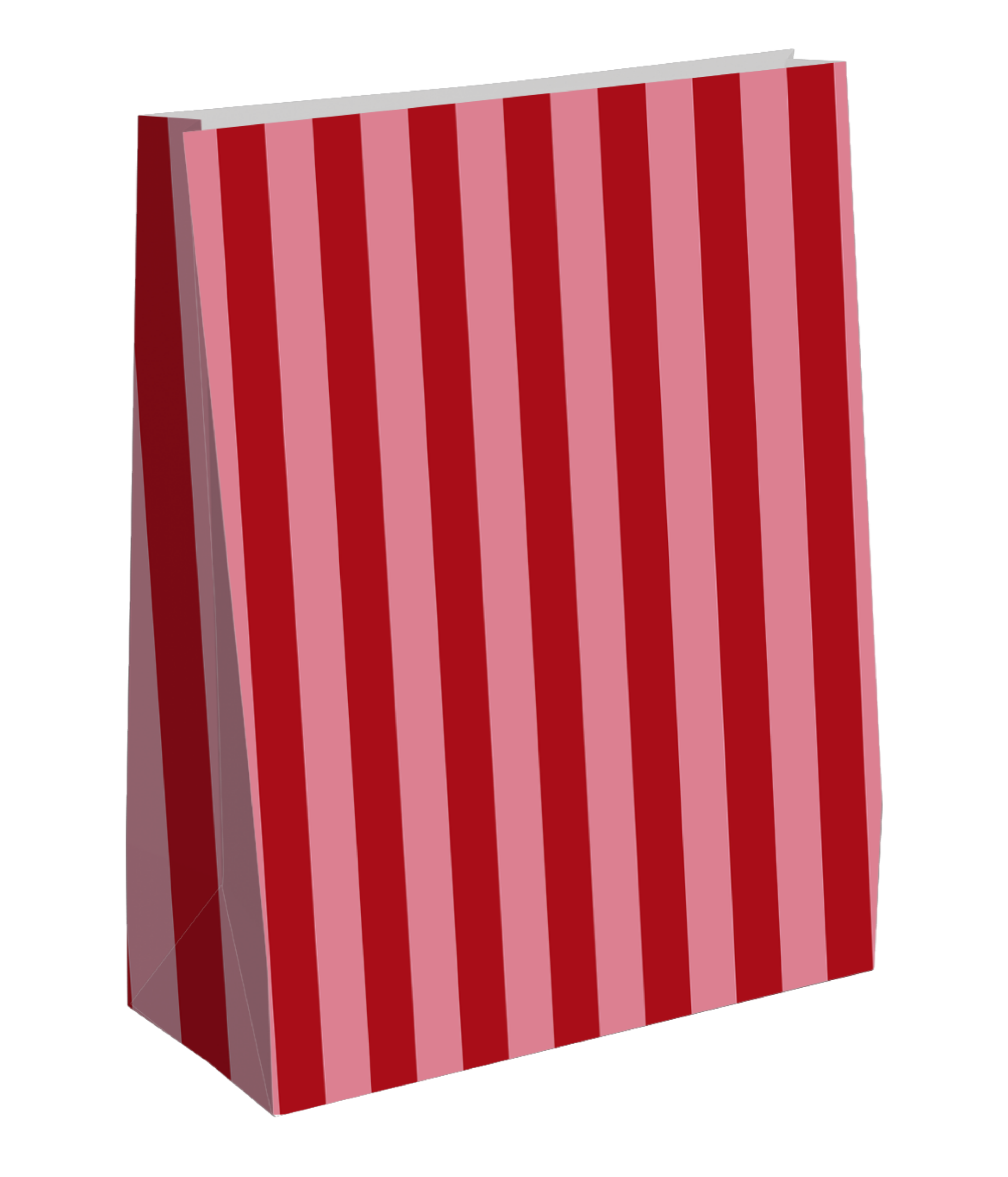 KP® Kraft papieren zakken - Stripes Rood/Roze 14x8x26cm 25st