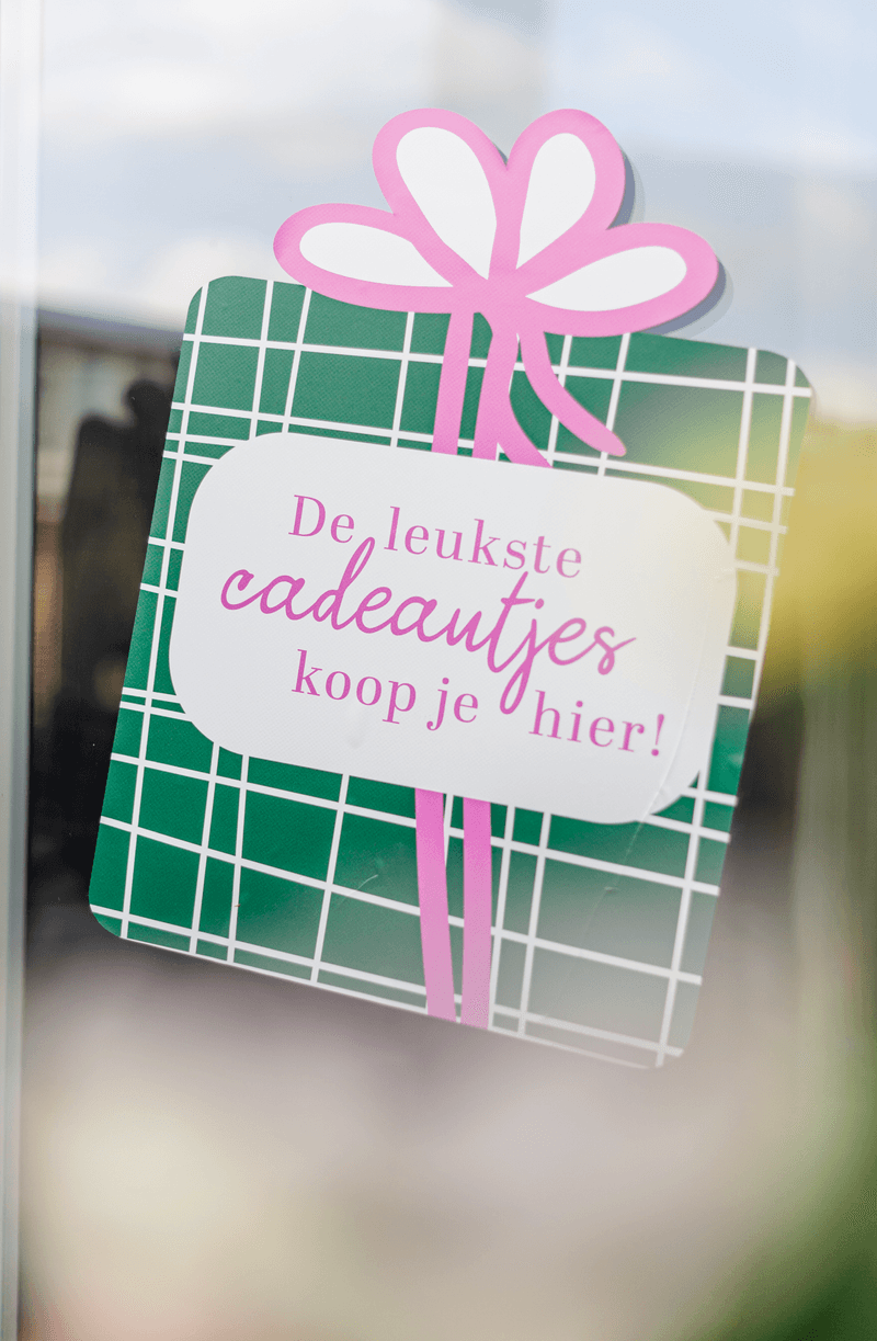 Laat klanten of gasten direct zien waar de leukste cadeaus te vinden zijn met deze opvallende raamsticker. Perfect voor winkels of cadeauhoekjes. Dankzij het duidelijke ontwerp en de felle kleuren springt de sticker meteen in het oog.