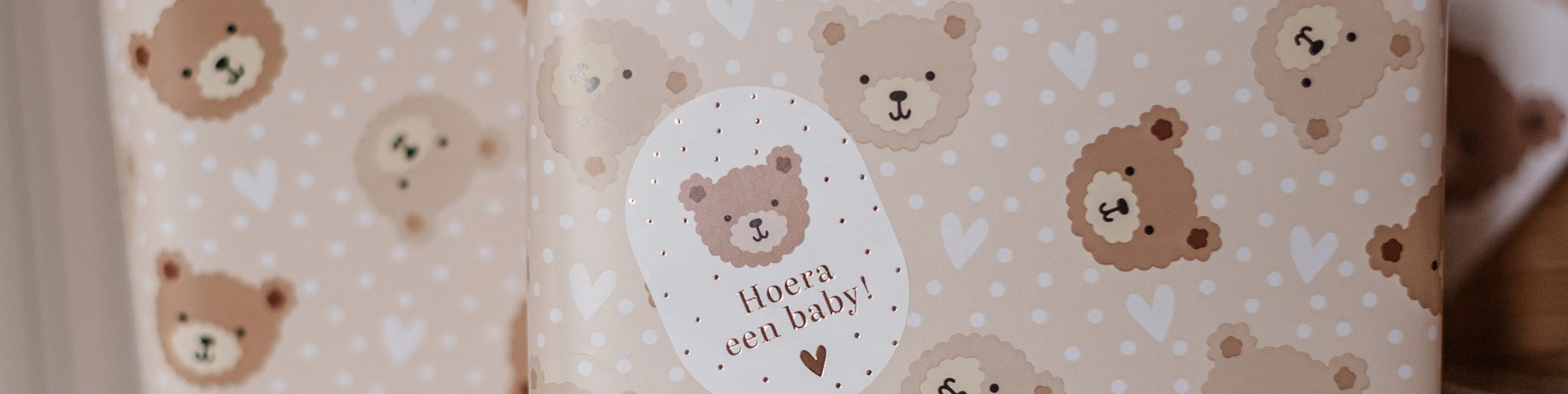Coated cadeaupapier Little Bear (pink/blue) op rol van 100 meter met een stijlvol en eigentijds dessin. Perfect te gebruiken voor het inpakken van je cadeautjes of geschenk.
