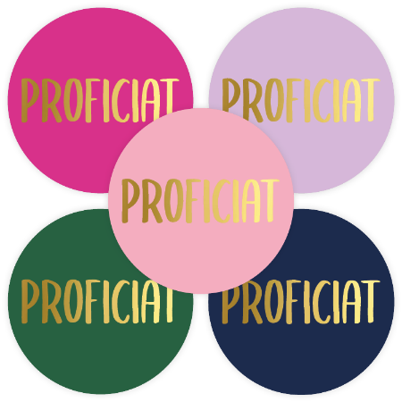 Nieuwe creatie cadeaustickers / sluitstickers! Wensetiket D40mm met opdruk "Proficiat". Te gebruiken bij verzending van de bestelling of bij uw geschenk.