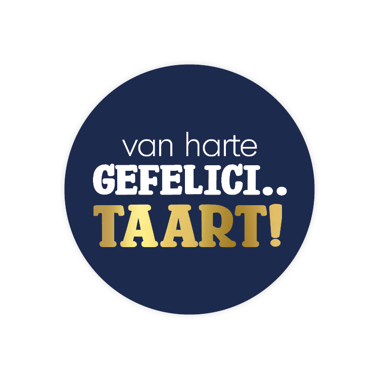 Nieuwe creatie cadeaustickers / sluitstickers! Wensetiket D40mm met opdruk "Van harte gefelici..taart!". Te gebruiken bij verzending van de bestelling of bij uw geschenk.