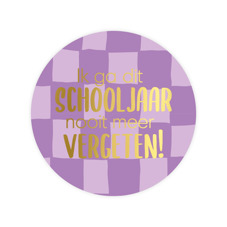Nieuwe creatie cadeaustickers / sluitstickers! Wensetiket D50mm met opdruk "Ik ga dit schooljaar nooit meer vergeten!". Te gebruiken bij verzending van de bestelling of bij uw geschenk.