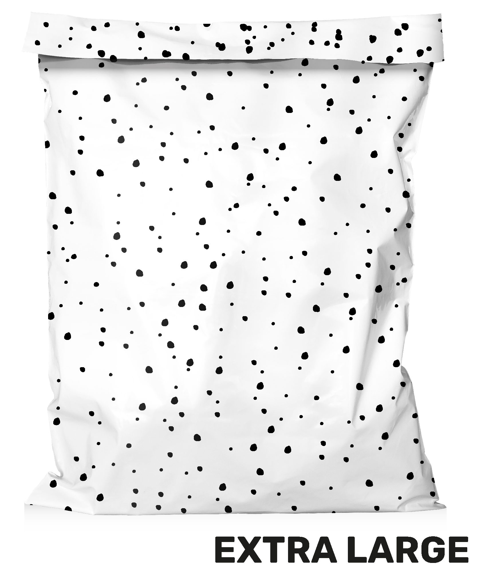 Op zoek naar een stijlvolle en stevige verzendzak? Kies dan voor deze witte LDPE verzendzak met zwarte confetti print. Ideaal voor het versturen van kleding, accessoires en andere artikelen. De zak is niet doorschijnend, scheurvast en voorzien van een sterke plakstrip – zo blijven je producten goed beschermd én stijlvol verpakt onderweg naar je klant.