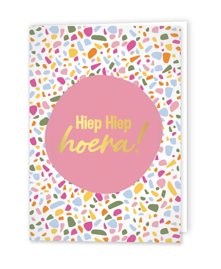 KP® Wenskaarten gevouwen - Hiep Hiep Hoera + Terrazzo roze - 5 stuks
