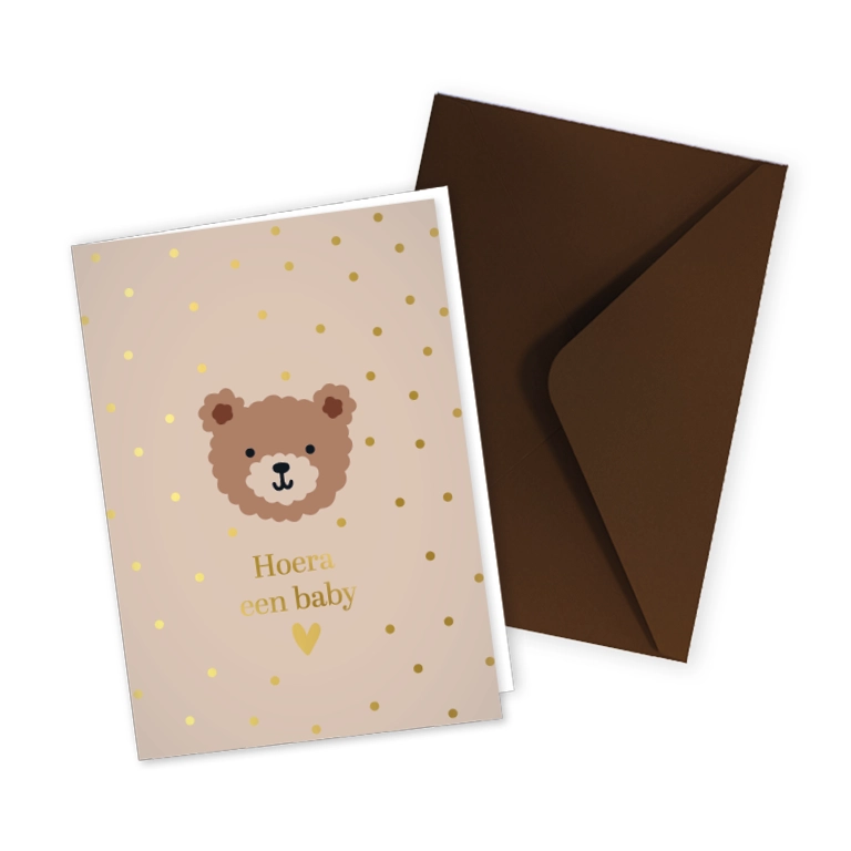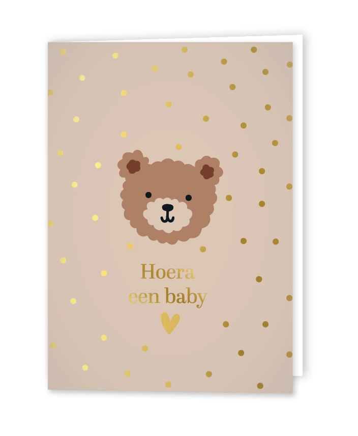 Wenskaarten gevouwen A6: Hoera een baby + beer