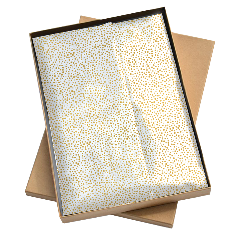 Pak eindeloos in door te spelen met diverse producten die bij het Luxury dots white/gold dessin passen. Dit zijde vloeipapier wordt gedrukt op hoogwaardig vloeipapier.
